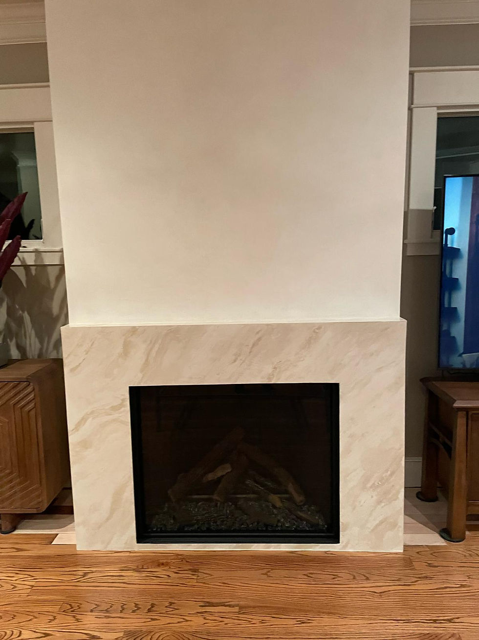 USA Supreme had the privilege of transforming an original fireplace in a historic home—preserving its charm while updating it with a sleek, modern gas fireplace and a stunning high-gloss Venetian finish surround for a truly sophisticated look.