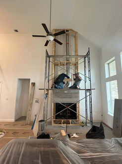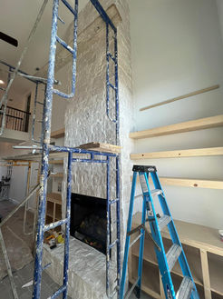 We transformed an empty, unused wall into a sophisticated and inviting focal point by installing a beautifully crafted gas fireplace with a stunning stone surround. Custom shelves and cabinetry were added on each side, framing the fireplace perfectly.
