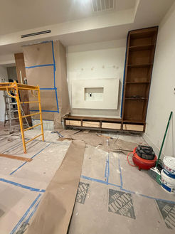 • Recessed TV installation between shelves and fireplace without disrupting the flow