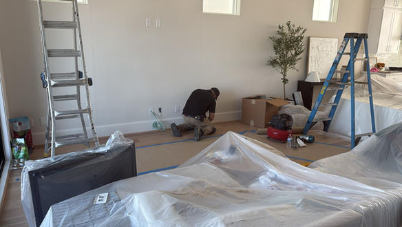 USA Supreme transformed a simple blank wall into a stunning electric fireplace build-out, complete with a luxurious Venetian finish surround—adding both warmth and modern elegance to the space.